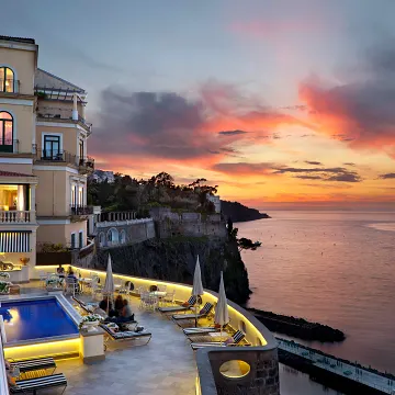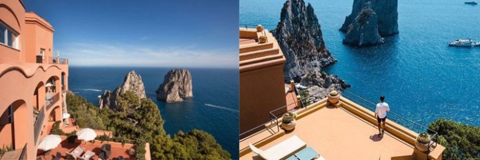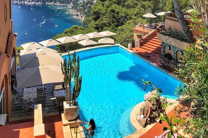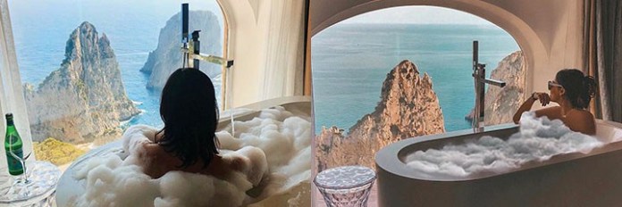 객실은 공간을 나누는 별도의 칸막이가 없어 넓고 시원하게 디자인됐으며, 이곳을 채우고 있는 가구 또한 남다릅니다. 조각품과 골동품, 고고학 유물 등 유니크한 소품이 현대적인 디자인의 가구와 조화를 이룬 점이 특징인데요. 특히 아트 스위트룸의 욕실은 욕조를 거실 한가운데에 배치해 창문 밖으로 자연을 감상할 수 있습니다. 카프리 섬을 대표하는 파라 글리오니 기암절벽과 그림 같은 해안선, 아나 카프리가 내려다보이죠. 인스타그램 사진들을 보면 마치 액자 속 그림을 보는 듯 비현실적인 아름다움을 선사하네요.