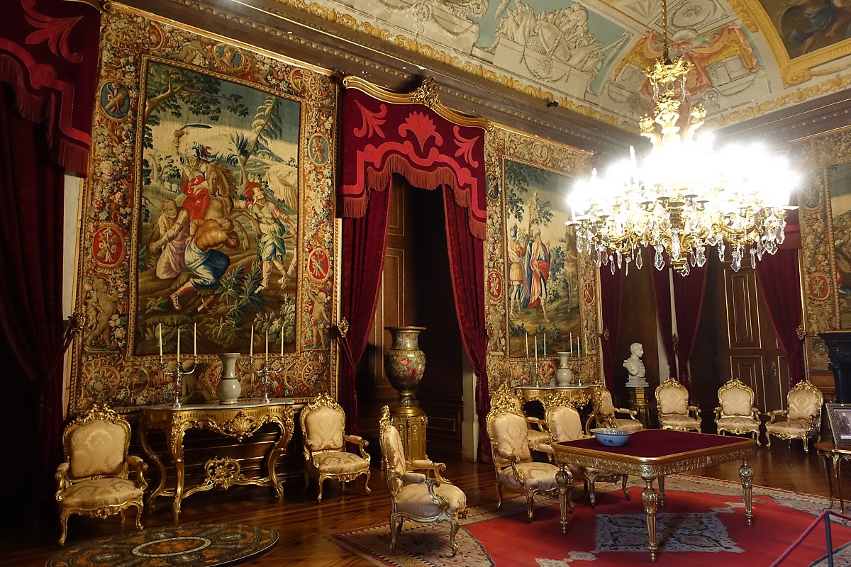미로 같았던 페나 궁전과 다르게 켈루스 궁전은 로코코 양식에 맞게 우아하고 세련된 분위기가 물씬 풍겼다. 금으로 장식된 각 방에는 은은한 조명이 내려앉아 있었다. 대사의 방에는 의자 2개가 서로 마주 보며 쌍으로 배치되어 있다. 귀족과 사신들이 국왕 부부를 영접하던 곳이다.
