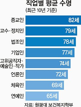 실제 직업별 평균 수명 자료를 보면 연예인이 제일 수명이 짧음..