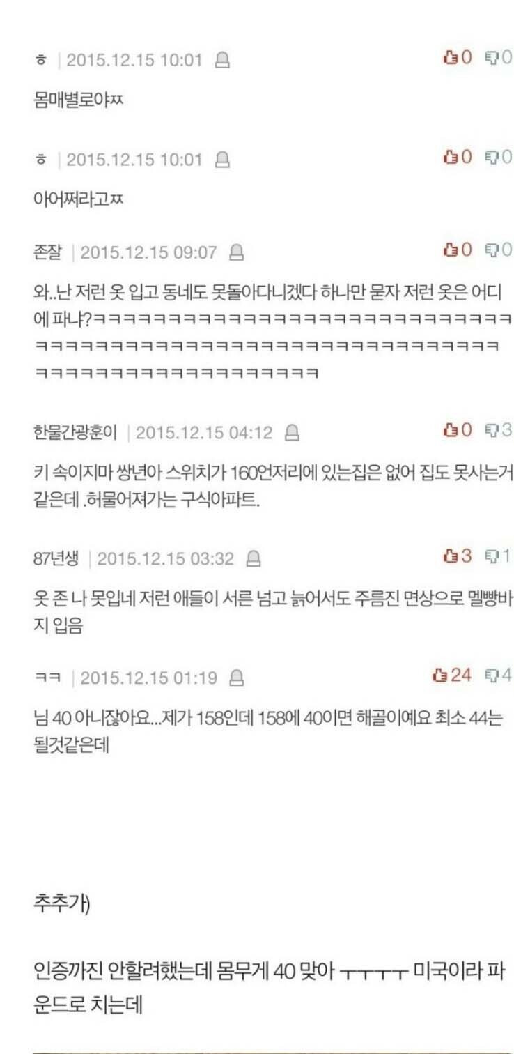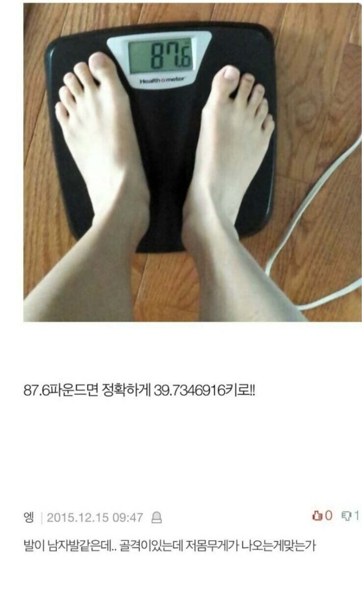 남자 발 같은데 저 몸무게가 맞냐고 의구심을 품는 여적여 댓글