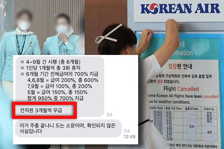 현재 대한항공 승무원들 사이에는 전 직원을 대상으로 한 순환 휴직과 급여 삭감을 실시할 것이라는 말이 공공연한 화두가 되고 있는데요. 이에 대해 대한항공 측은 “휴가 소진 독려, 유휴 부지 매각 등 회사 차원의 자구 노력을 최대한 하면서 버티는 중”이라며 “전 직원 대상 급여 삭감과 순환휴직은 추후에 검토할 것”이라고 설명했죠.