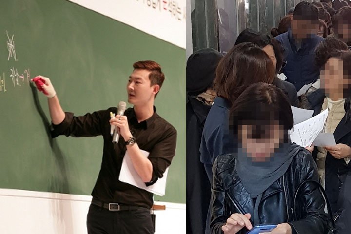 오프라인 강의 당시 현우진과 강의 등록 위해 줄 선 학부모들