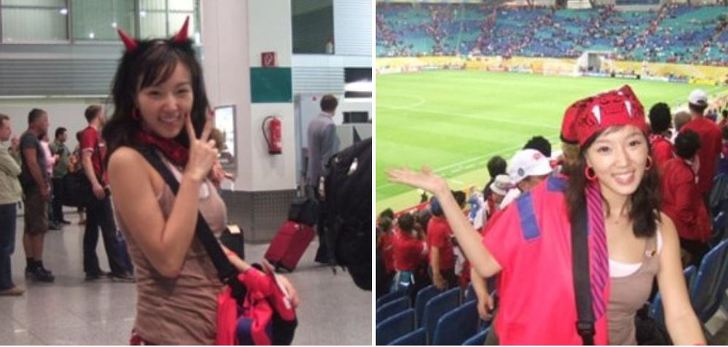 김민경은 2006 독일 월드컵 당시에도 남자친구 이천수를 응원하기 위해 독일 현지로 달려갔습니다.